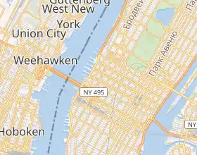 ![]() 9-я авеню в Адской кухне; на заднем плане Херст-тауэр и Тайм-Уорнер-Центр | |