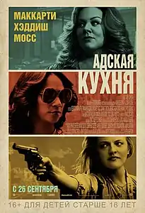 «Адская кухня» (англ. Kitchen) — американская криминальная драма Андреа Берлофф, основанная на одноимённой серии комиксов, публиковавшейся издательством DC Comics под импринтом Vertigo. В главных ролях: Мелисса МакКарти, Элизабет Мосс, Тиффани Хэддиш[3][4][5]. Они сыграли жен ирландских бандитов, которые взяли на себя управление организованными преступными операциями в районе Адская кухня в Нью-Йорке в 1970-х годах после того, как ФБР арестовало их мужей.