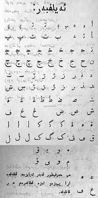 - арабское письмо — с середины XIX века до 1920-х годов. Широкого распространения не имела;