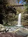 В месте падения водопада образовалось озеро примерно 7 метров в диаметре. Струи воды образовали каньон, обрывистые стены которого имеют подковообразную форму (до 20 м высотой), заросшие самшитом и плющом.