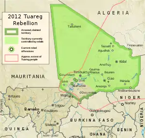 В течение января—марта повстанцы заняли бо́льшую часть территорий трёх областей северного Мали и вывели их из-под контроля центрального правительства, включая ключевые города Менака, Кидаль, Гао и две военные базы армии Мали с хранящимся на них оружием.