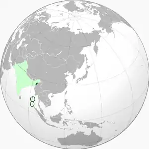 ![]() Светло-зелёным: территория, на которую претендовала Свободная Индия зелёным: де-факто контролируемые территории (с японской помощью) |