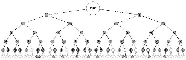 Принцип кодирования азбуки Морзе исходит из того, что буквы, которые чаще употребляются в английском языке, кодируются более простыми сочетаниями точек и тире. Это делает освоение азбуки Морзе проще, а передачи — компактнее.