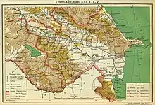 В 1922 году все три бывших государства были объединены в Закавказскую СФСР, входившую в состав СССР, прежде чем быть вновь разделёнными в 1936 году. В 1923—1929 годах полоса земли в Азербайджане между Нагорным Карабахом и Арменией была организована как Курдистанский уезд, в просторечии известный как Красный Курдистан, позже переименованный в Курдистанский округ, а затем и ликвидированный в 1930 году[32][33][34].