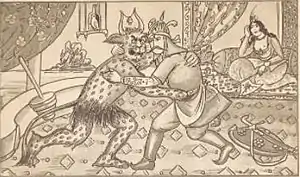 Дивы одни из наиболее часто встречающихся мифических образов в азербайджанских сказках. Они, как правило, большого роста, некрасивые, покрытые шерстью и физически сильные, охраняют сокровища и часто похищают девушек. В некоторых мифах, душа дивов заключена в маленькой птичке в стеклянном пузырьке. Бывают также трёх-, семи- и сорокоголовые дивы. В некоторых сказаниях, однако, встречаются и положительные дивы, к примеру, в сказании «Шахзаде Муталиб»[19].