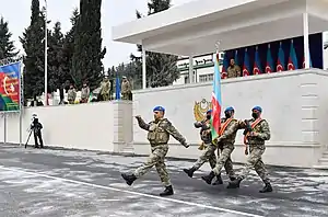 В ходе церемонии Алиев вручил бригаде коммандо воинской части боевое знамя. Принимал знамя командир 218-й бригады коммандо полковник Эльшан Санаев[8]. Затем состоялся торжественный марш военнослужащих с боевым знаменем и показательные выступления военнослужащих, операции «засада», «атака» и «просачивание», в ходе которых подразделения коммандо продемонстрировали универсальные навыки[7].