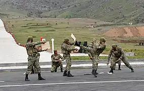 - Бойцы азербайджанской бригады коммандо во время демонстрации универсальных навыков. 24 декабря 2021 года