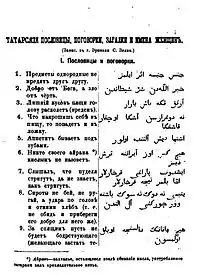 - Страницы с азербайджанскими пословицами и поговорками, напечатанными в «Сборнике материалов для описания местностей и племен Кавказа»