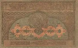 В октябре 1918 года правительство Азербайджанской Республики начало эмиссию бонов независимо от своей доли в эмиссии Закавказья. В сентябре 1919 года был создан Государственный банк Азербайджана, начавший выпуск банкнот Азербайджанской Республики, выпускавшихся до апреля 1920 года.