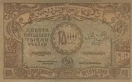 В апреле 1920 года начинается выпуск бумажных денег Азербайджанской Социалистической Советской Республики, выпускавшихся до января 1923 года. Все предыдущие выпуски денег были аннулированы.