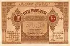 100 | 138×90 | коричневый | название государства, номинал, пояснительная надпись и год выпуска |