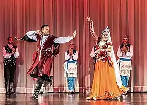 Азербайджанские танцы исполнялись и живущими в Закавказье курдами[57]. Схожие по характеру с яллы танцы живущих по соседству армян и курдов оказали влияние на некоторые виды азербайджанского танца «Яллы» (особенно курдские танцы)[58][59].