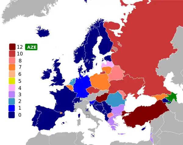 В финале за Азербайджан проголосовала 21 страна, столько же стран не отдали Азербайджану ни одного голоса. Максимальное количество баллов (12) Азербайджану дали