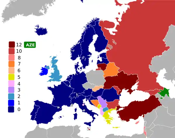 За Азербайджан, в свою очередь, проголосовала 21 страна, 20 стран не отдали Азербайджану ни одного голоса. Тем самым максимальное количество баллов Азербайджану дали Украина, Турция, Литва и Мальта; 10 баллов — Россия, Молдавия, Болгария и Грузия; 8 баллов — Израиль и Кипр.