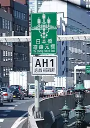 Знак на магистрали Кёнбу с обозначением Азиатского маршрута AH-1