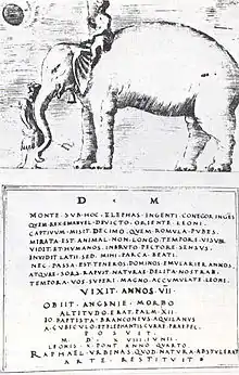 Мемориальные фрески со слоном написал Рафаэль Санти (фрески не сохранились), а сам папа Лев X написал текст эпитафии по слону[24][25].