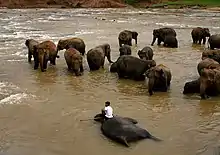 - шри-ланкийский, или цейлонский слон (Elephas maximus maximus) встречается только на Шри-Ланке. Отличается самой крупной головой по отношению к размерам тела и обычно имеет обесцвеченное пятно кожи на лбу и у основания хобота. Бивней, как правило, не имеют даже самцы.