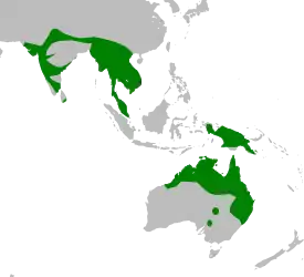 Азиатский ябиру является единственным видом аистов, живущим в южной и юго-восточной Азии. Распространён от южной Индии и до Вьетнама. Южная граница его обитания — северная Австралия.