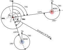 Курсовой угол - угол между диаметральной плоскостью судна (осью) и направлением на предмет. Отсчёт курсовых углов производится от носовой части судна по часовой стрелке от 0 до 360°. Или полукруговой счёт курсовых углов от 0 до 180° от носовой части судна в сторону борта, по которому расположен предмет.[17]