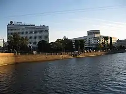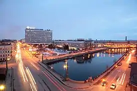 Очень интересна в архитектурном отношении новая большая высотная гостиница «Советская» на Лермонтовском проспекте близ Фонтанки. Основной двадцатиэтажный корпус её располагается вдоль проспекта Огородникова, а дополнительный, пятиэтажный, примыкает к нему под прямым углом, прикрывая торцы соседних строений. К зданию присоединён двухэтажный флигель с вестибюлем и рестораном на 700 человек[1].