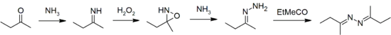 - RR1C=N-N=CRR1 + N2H4 → 2 RR1C=N-NH2