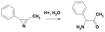 Катализируемый кислотами, например концентрированной соляной кислотой, гидролиз 2Н-азиринов приводит к α-аминокетонам.