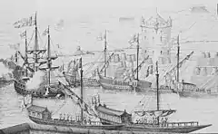 Тем временем, турки, не подозревая близкого соседства с уже прибывшими к устью Дона на своих лёгких лодках казаками, вечером 20 Мая отправили со своих морских кораблей (стоявших у устья Дона) в Азов на 13 грузовых судах оружие, сукно, провиант, деньги (под прикрытием янычар). Как только эти суда подошли к устью Дона 21 мая, казаки, разогнав охрану, захватили 10 грузовых кораблей и большую часть сожгли.