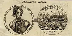 В конце июня основные силы осадили Азов (крепость в устье Дона). Гордон стал против южной стороны, Лефорт влево от него, Головин, при отряде которого находился и царь — вправо. 2 июля войска под командованием Гордона начали осадные работы. 5 июля к ним присоединились корпуса Головина и Лефорта. 14 и 16 июля русским удалось занять каланчи — две каменные башни по обоим берегам Дона, выше Азова, с протянутыми между ними железными цепями, которые преграждали речным судам выход в море. Это стало фактически наивысшим успехом в ходе кампании. В крепости находился 7-тысячный турецкий гарнизон под командованием Хасан Арслан-бея[7]. 5 августа пехотные полки Лефорта при поддержке 2500 казаков предприняли первую попытку штурма крепости, которая не увенчалась успехом. С русской стороны потери убитыми и ранеными составили 1500 человек[6]. 25 сентября произошёл второй штурм крепости. Ф. М. Апраксину с Преображенским и Семёновским полками и 1000 донских казаков удалось захватить часть укреплений и ворваться в город, однако тут сказалась несогласованность в русском войске. Турки успели перегруппироваться, а Апраксин, не поддержанный другими частями, вынужден был отступить[7]. 2 октября осада была снята[3]. 3000 стрельцов были оставлены в захваченных оборонительных каланчах, названных «Новосергиевским городом»[6].
