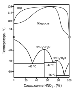 - тригидрат HNO3·3H2O, Tпл = −18,47 °C.
