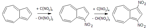 - В реакциях с нуклеофилами азулен менее активен, замещение идет в положение 4, 8 и далее в 6.