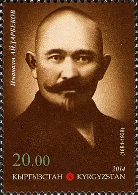 ![]() Иманали Айдарбеков на марке Почты Кыргызстана 2014 года | |
