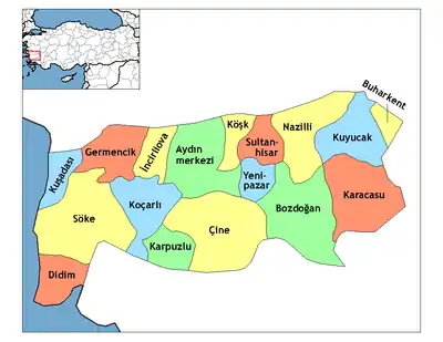 Ил Айдын состоит из 17 районов (ильче, тур. ilçe):