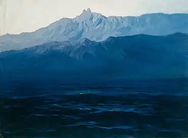 В этой работе Куинджи использовал оттенки синего цвета, создавая эффект «цветовой растяжки» — плавного перехода от сине-чёрных волн у подножия горы до светлых полупрозрачных небес[3]. К этому же периоду относится и другая картина, выполненная в схожей цветовой гамме — «Сумерки на море. Крым» (см. иллюстрацию).