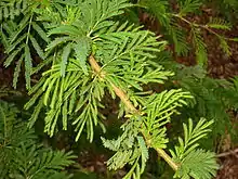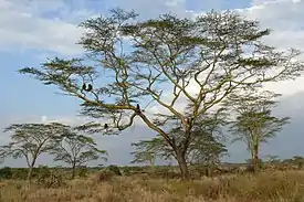 Акация желтокорая — дерево 15-25 м в высоту с гладкой зеленовато-жёлтой корой. Это один из немногих видов деревьев, в которых фотосинтез происходит в коре. Прямые, длинные шипы белого цвета растут из ветвей попарно. Цветы имеют шарообразную форму. Плоды этих деревьев имеют форму стручков.