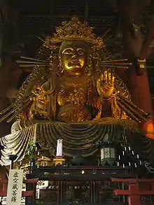 Бодхисаттва Акашагарбха (санскр. आकाशगर्भ, IAST: Ākāśagarbha («Сущность Пространства», «Лоно Пространства»); кит. 虛空藏 Xū kōng zàng (Сюкунцзан); яп. 虚空蔵 Kokūzō (Кокудзо); тиб. ནམ་མཁའི་སྙིང་པོ། Namkhai Nyingpo, вайли nam mkha’i snying po; там. ஆகாயகர்பர்) — воплощает собой «Саматаджняна» («Знание (Мудрость) Равностности»)[1] (санскр. समताज्ञान, IAST: Samatājñāna; тиб. མཉམ་ཉིད་ཡེ་ཤེས་ ньямньи йеше, вайли mnyam-nyid ye-shes) и сознание обоняния. Акашагарбха относится к семейству Ратна, поэтому его сторона света — юг, и Он выражает собой, как и глава данного семейства — Ратнасамбхава, аспект даяния. Это даяние из сокровищницы равной размерами всему пространству. «Лоно» в Его имени — вместилище полного буддийского закона. «Сущность» этого «Лона» есть внутри каждого живого существа. «Пространство» невозможно уничтожить или как-то ему навредить, ведь в нём нет преград, не за что зацепиться и некуда нанести удар. Акашагарбха воплощает собой несокрушимую сокровищницу Дхарма-знаний и всевозможных благ.