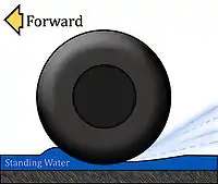 Когда автомобиль попадает в воду одним колесом, мгновенно увеличивается сопротивление движению, и, как следствие, резкое снижение скорости, сопровождаемое ударом, при котором рулевое колесо может быть выбито из рук водителя и автомобиль совершит непроизвольный разворот. Поэтому руль нужно держать двумя руками в положении «10-2» или «9-3» (как на циферблате часов), плотно фиксируя кистями обод руля. Разворот автомобиля возможен и при въезде в лужу двумя колёсами: толщина слоя воды не бывает одинаковой и после всплытия одно из колёс может коснуться твёрдого основания. Всплытие всех четырёх колёс бывает крайне редко.