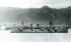 ![]() Крейсер «Акицусима» в Кобэ в 1897 году |
