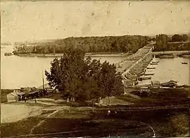 Переправа являлась стратегическим объектом в Гражданскую войну, когда он пострадал, долгое время ремонтировался и переправа осуществлялась небольшим паромом, передвигавшимся вручную по тросу, и плоскодонными лодками, принадлежавшими частникам. Только в 1934 году был построен новый плашкоутный мост по проекту инженера К. Г. Терещенко.[5]