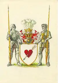 Описание герба: В серебряном поле сердце красного цвета, пронзённое стрелою, летящею к правому нижнему углу. |