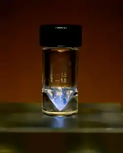 Актиний — это металл серебристо-белого цвета, тяжелый, мягкий, по внешнему виду напоминает лантан. Радиоактивен. Вследствие радиоактивности в темноте светится характерным голубым цветом.