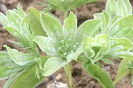 Зонтики простые, с небольшим количеством цветков, «обёртка» большая и по размерам превосходит зонтик, довольно тонкая. Цветки полигамны, ± бесчерешковые центральные цветки гермафродитны, внешние черешковые и мужские. У лепестков длинная, загнутая верхушечная долька.