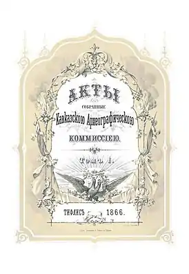 - Акты, собранные Кавказской археографической комиссией // Большая советская энциклопедия : [в 30 т.] / гл. ред. А. М. Прохоров. — 3-е изд. — М. : Советская энциклопедия, 1969—1978.