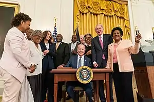 ![]() Джо Байден подписывает законопроект о признании 19 июня федеральным праздником | |