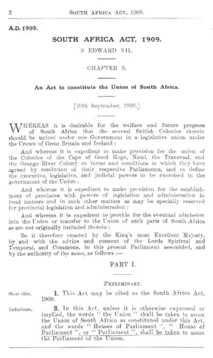 По этому документу, были объединены в Южно-Африканский Союз (ЮАС) Капская колония, Натал, Трансвааль и колония Оранжевой реки. Сам ЮАС вошёл в Британскую империю на правах доминиона.