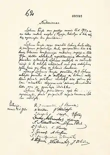 | 20 | Vilniuje, vasario 16 d. 1918 m. | Kazys Bizauskas | В Вильнюсе, 16 февраля 1918 года | Казис Бизаускас |