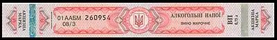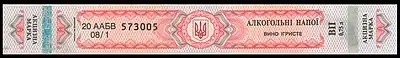 С 1 августа 2008 года постановлением Кабинета министров Украины в обращение были введены марки акцизного сбора нового образца для алкогольных напитков в зависимости от суммы акцизного сбора, уплаченного за единицу маркированной продукции. Марки на алкогольные напитки иностранного производства имеют фиолетовый цвет, украинского — зелёный. Сквозная нумерация на марках состоит из двух цифр индекса региона Украины по местонахождению производителя продукции, серии и индивидуального для каждой марки номера. Кроме того, на каждую марку наносятся следующие реквизиты: надпись, состоящую из начальных букв слов «алкоголь импортный» или «алкоголь отечественный» — «АІ» или «АВ», двух двузначных чисел (год и месяц выпуска марок), разделённые косыми линиями, и сумма акцизного сбора, уплаченная за единицу маркированной продукции, с точностью до тысячного знака.[1][2]