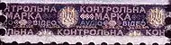 - Вверху горизонтальная надпись «контрольна марка»; под ней по центру марки вписанный в круг трезубец; размер трезубца 2 квадрата по горизонтали и 2½ по вертикали.