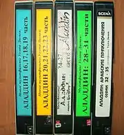Официально в России некоторые из серий издавались на VHS. Вышло две видео-кассеты под названием «Аладдин»: «Несметные сокровища» и «Волшебники» и три выпуска «Коллекция принцессы: Волшебные истории Жасмин»: «Магическое зеркало», «Волшебный цветок»[16] и «Соперница Жасмин»[17].