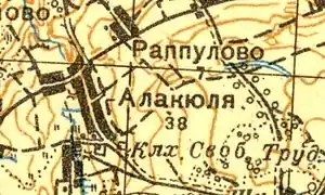 АЛАКУЛЯ (АЛАКЮЛЯ) — деревня Павловского городского правления при ручье Алакюльском, число дворов — 20, число жителей: 57 м. п., 64 ж. п.[13]. (1862 год)