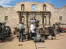 Фильм был снят в окрестностях Остина (Техас), в промежутке с января по июнь 2003 года, преимущественно на территории ранчо Раймерс. Построение ленты было сконцентрировано на исторической точности и правдоподобии деталей, так, например, на фасаде миссии отсутствует легкоузнаваемый сегодня «горб», который был достроен позже, при реставрации комплекса зданий после сражения.